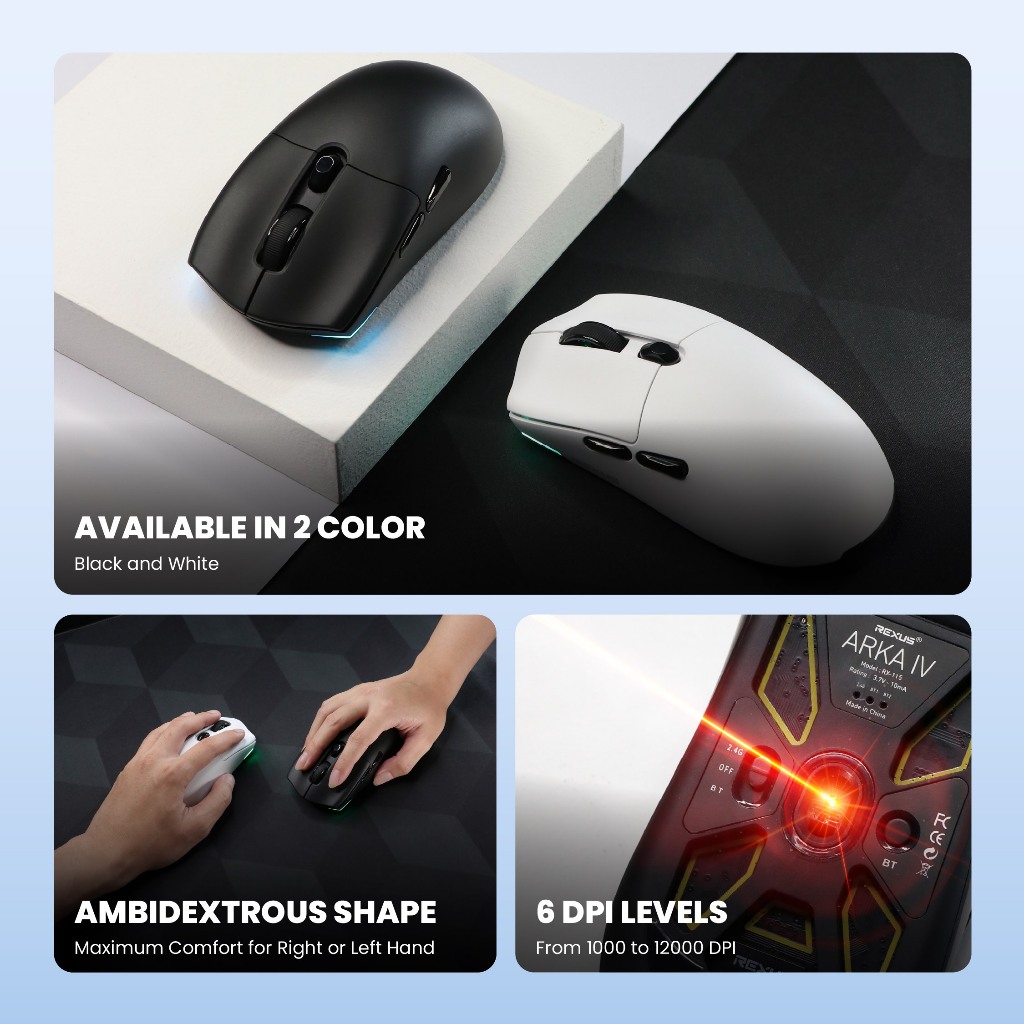 Rexus ARKA IV / RX-115 Mouse Gaming Wireless Triple Connection PAW3311