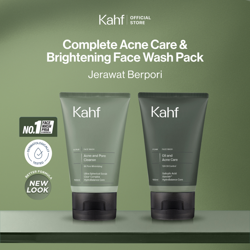 [KAHF BUNDLE 2IN1 PAKET FACIAL WASH] Complete Acne Care & Brightening Face Wash Pack 100 ml isi 2 pcs