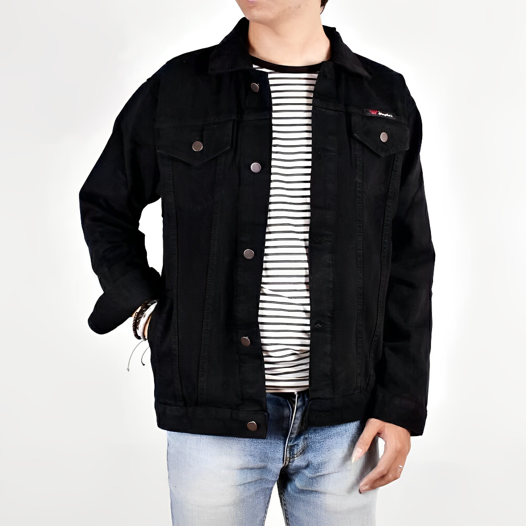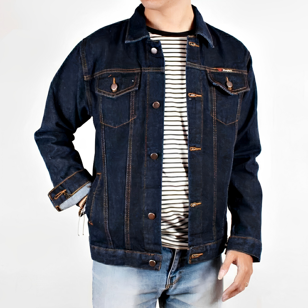 Jaket Jeans Pria Polos Denim Kancing Ukuran M XXXL