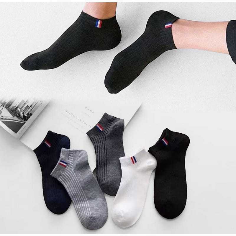 3 Pasang Kaos Kaki Motif Prancis, Pendek Semata Kaki, One Size Dewasa
