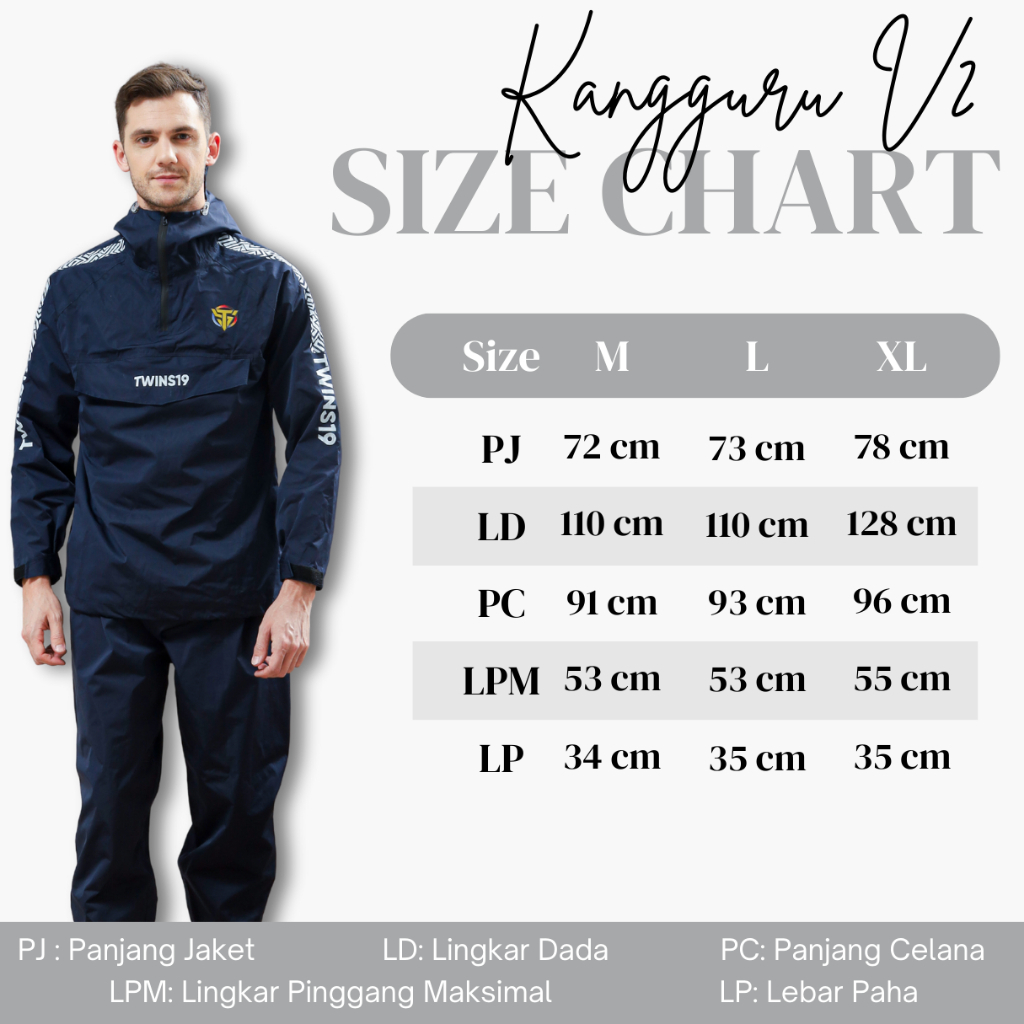 Jas Hujan Saku Kangguru V2 Twins19 Twins Nineteen Setelan Jaket Celana Pria Wanita Kantong Kanguru jas hujan modern