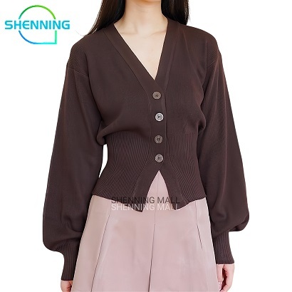 [Star] SHENNING Cutesy Fitted Cardigan Atasan Rajut Wanita Vneck Knitwear Sweater Outer Luaran