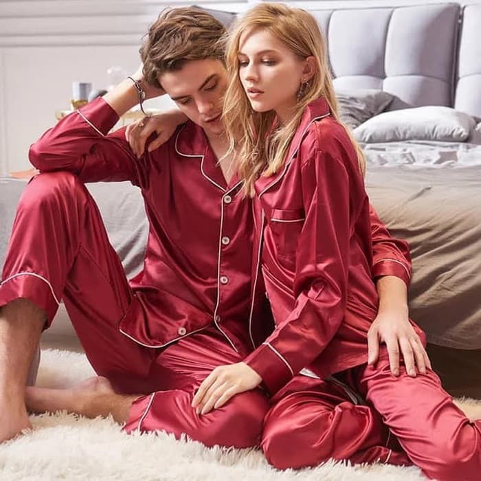 Setelan Piyama Couple Satin Silk Premium Ukuran L-XL