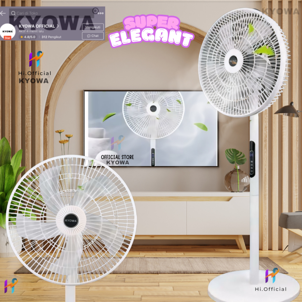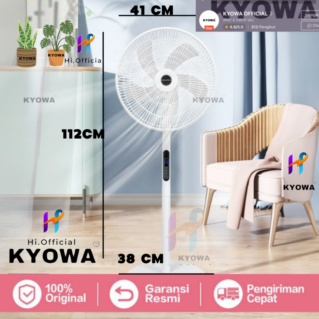 Kipas Angin Standing Kyowa KW-1608A/Kipas Berdiri Dengan Tutup/5 Baling Baling/Kipas Remote/Desain Modern Tanpa DP
