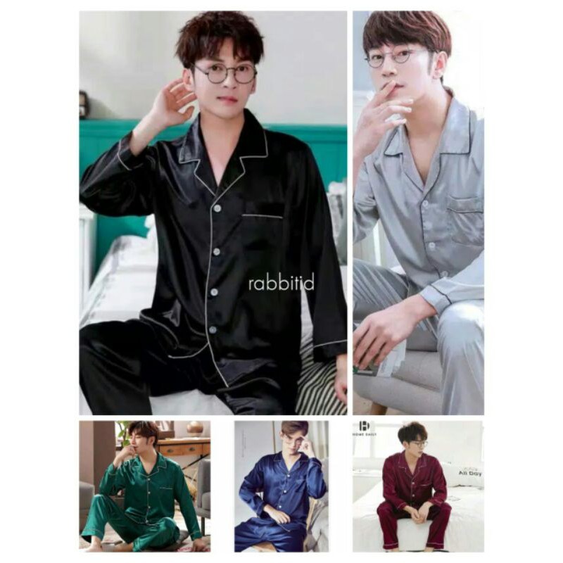 stelan baju tidur piyama pp cowok pria lelaki satin polos