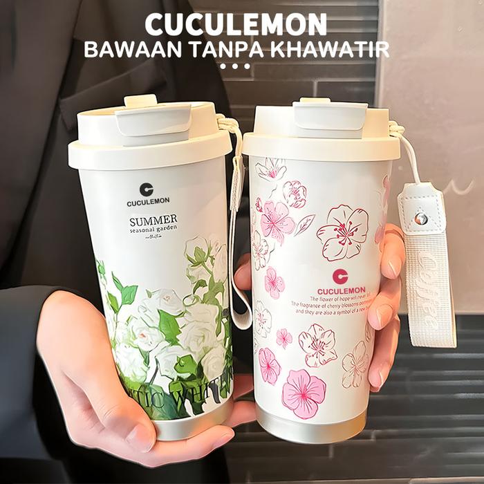 Cuculemon Botol Minum Tumbler Stainless Steel 530ml Termos Kopi Gelas Vacum Tahan Panas Dingin - Bunga Sakura-530ML