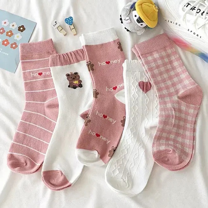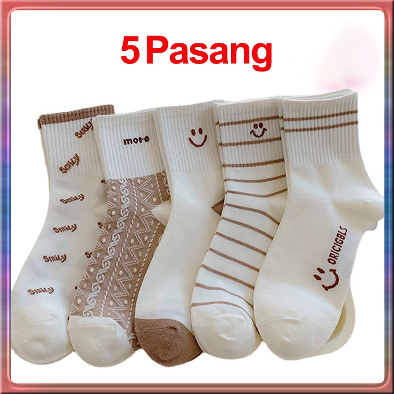 5 Pasang Kaos Kaki Pendek Wanita Pria Fashion Ala Korea / Kaos Kaki Pendek Motif