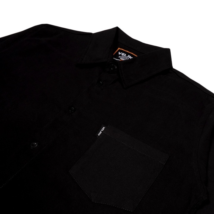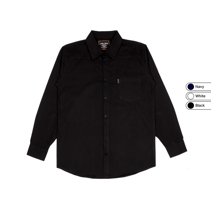 Veljko Kemeja Pria Basic Polos Panjang Chuck Black