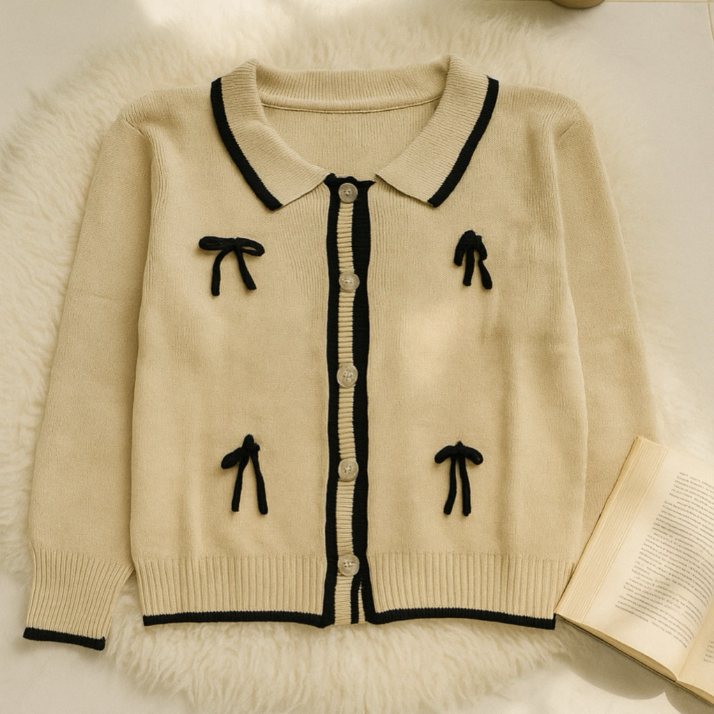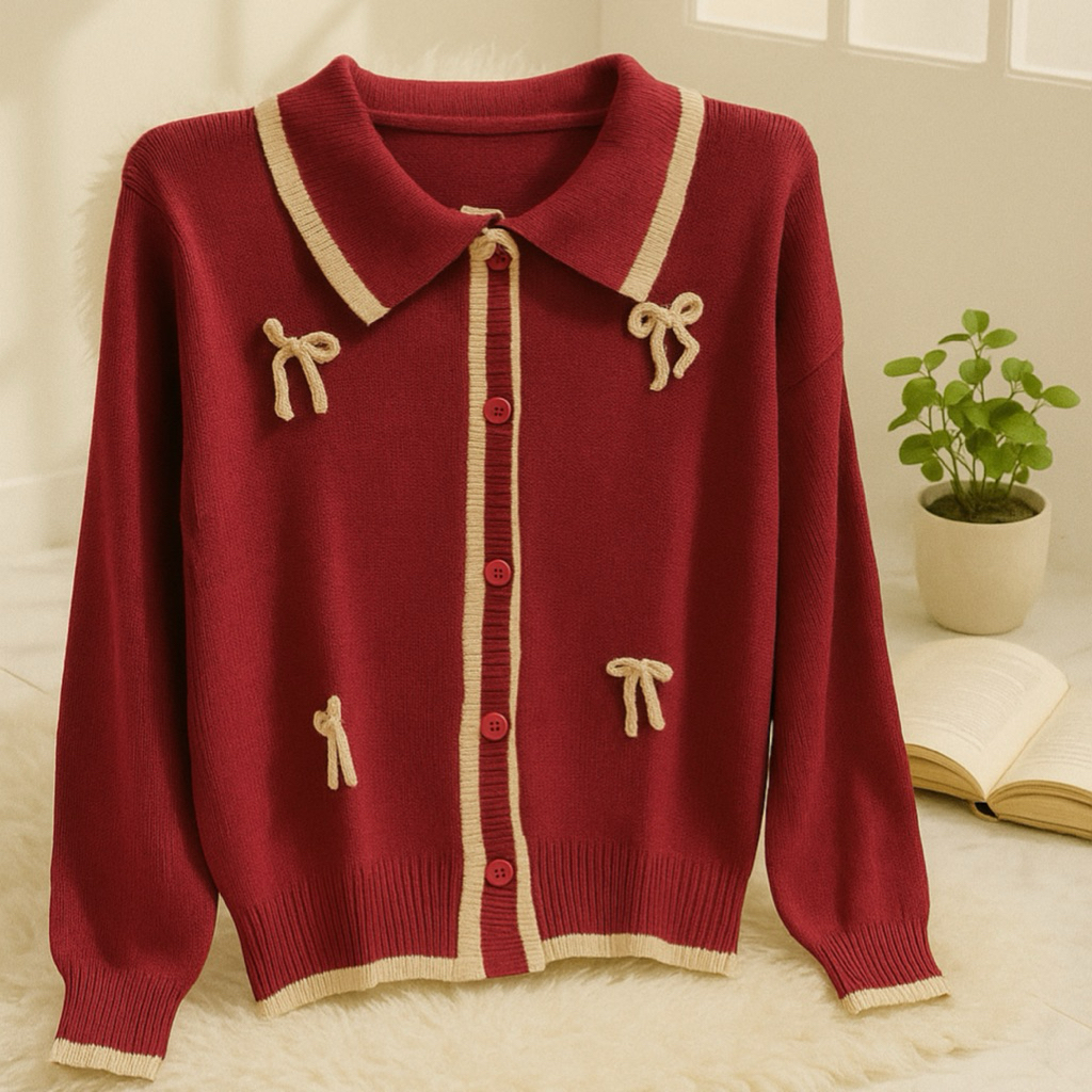 [Star] Cardigan Rajut Wanita Lengan Panjang Pita Korean Style Lembut Halus | Bella Rajut