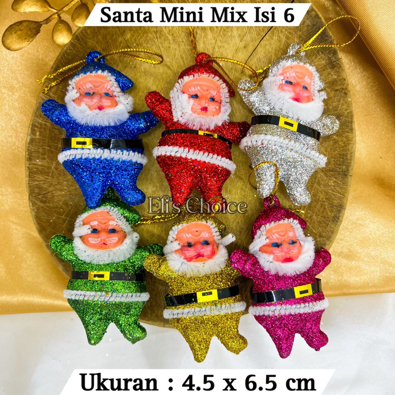 Santa Mini Isi 6 Gantungan Pohon Natal Sinterklas Merah Dekorasi Merry Christmas