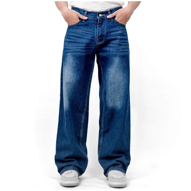 Celana Jeans Pria Gombrong Loose Fit Washed