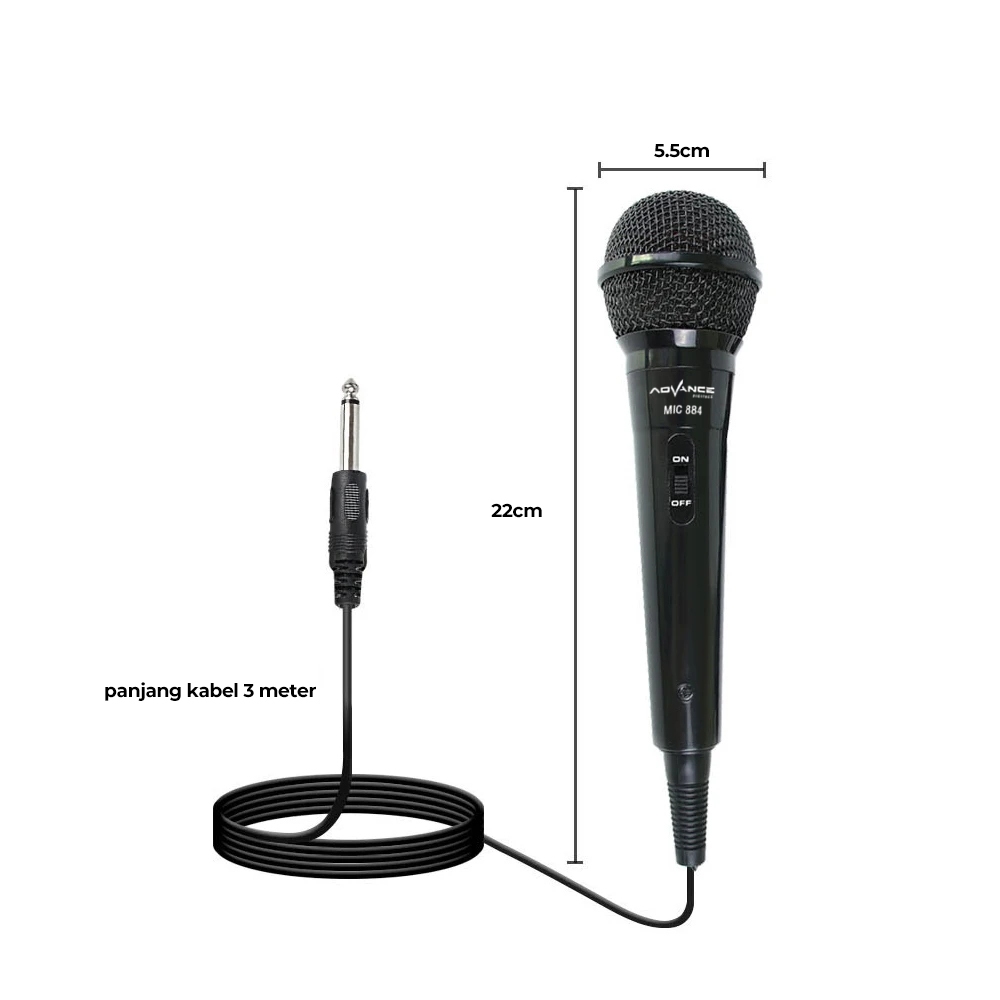 Advance MIC-884 Dengan Kabel Mikrofon Dynamic Microphone Mic Karaoke Profesional Microphone