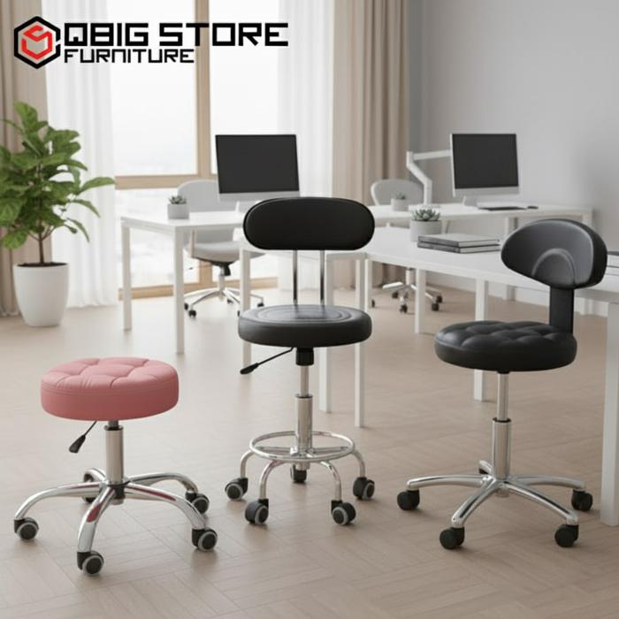 KURSI SALON HIDROLIK BULAT / BARSTOOL / KURSI LAB RODA - HITAM - 201 - HITAM