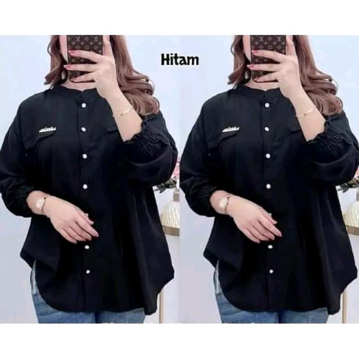 Salsa Shirt Kemeja Polo Linen Premium Atasan Wanita Jumbo Full Kancing Aktif Oversize Lengan Karet Baju Panjang Basic -