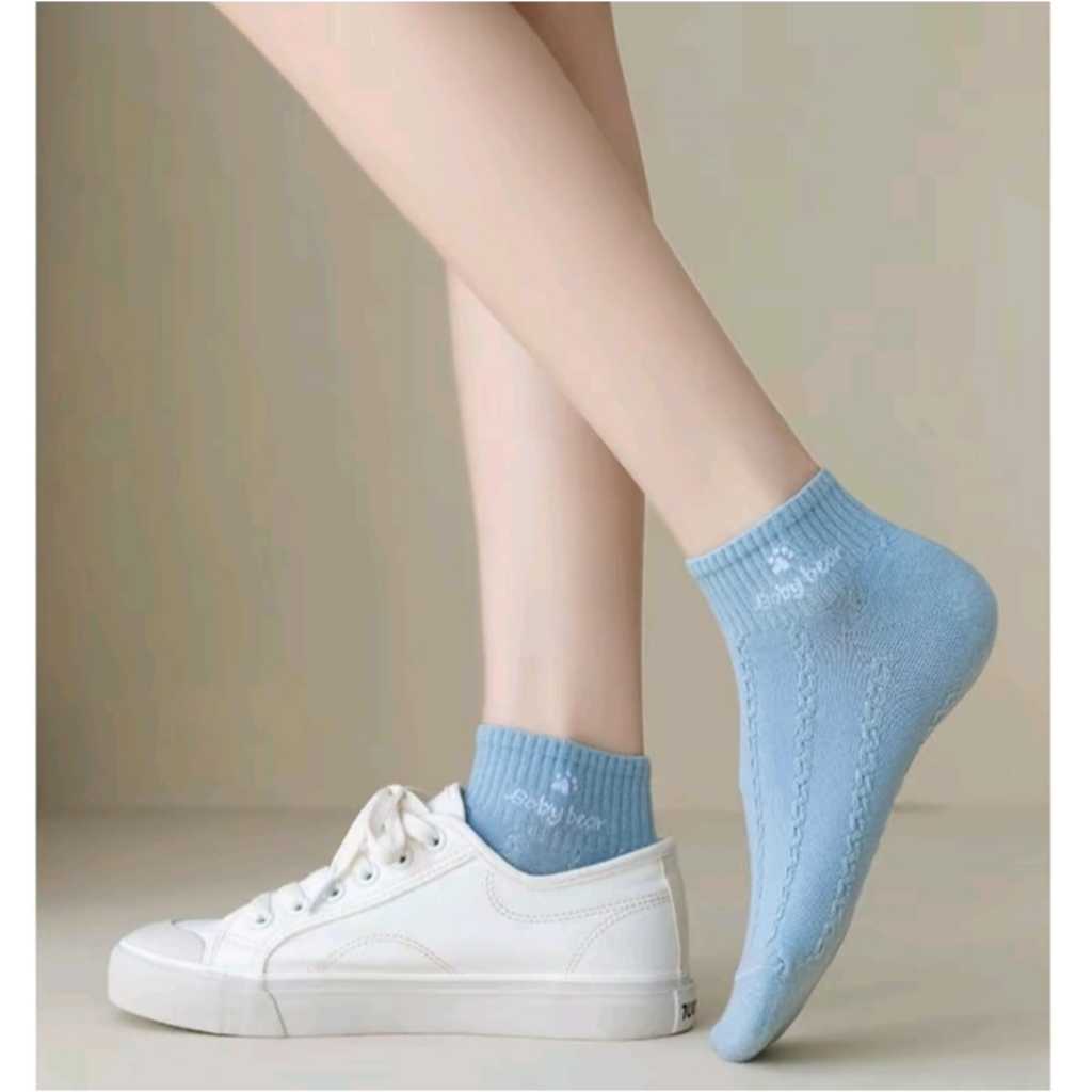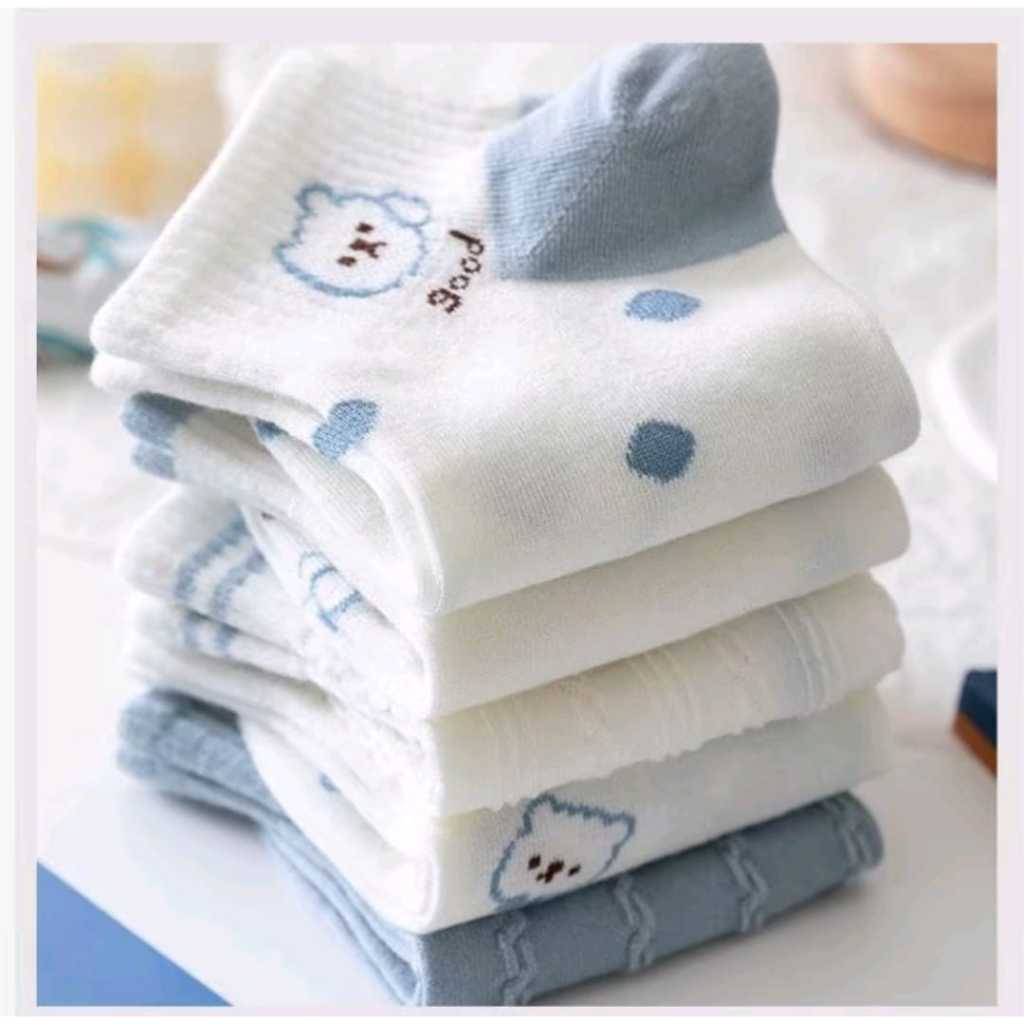 5Pasang Kaos Kaki Pendek Wanita Fashion Ala Korea / Kaos Kaki Pendek Motif Bear Biru