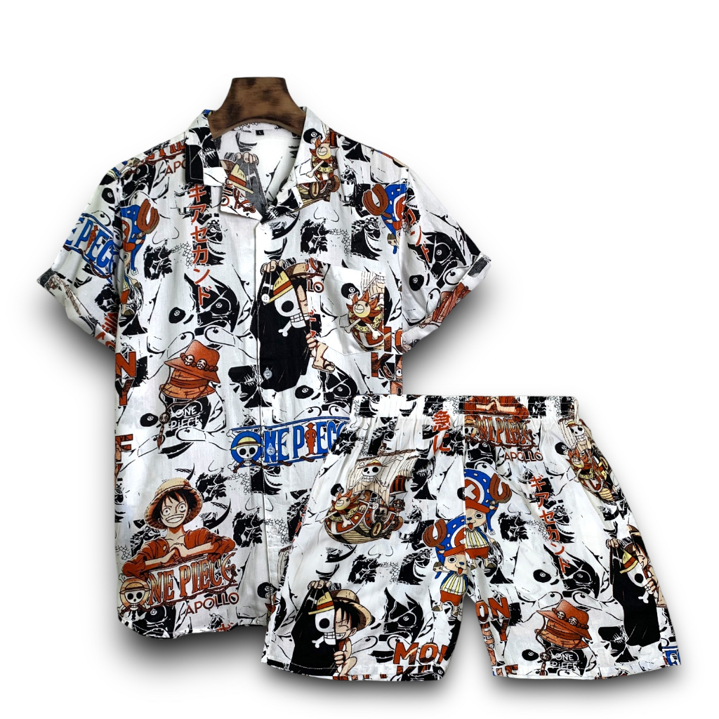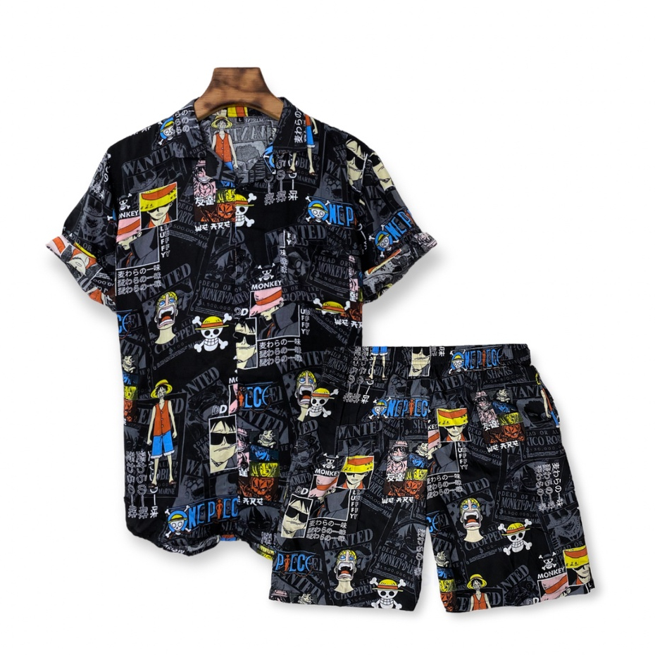 Kemeja Rayon Setelan / Oneset Celana Pendek Unisex Piyama Baju Tidur Motif One Piece