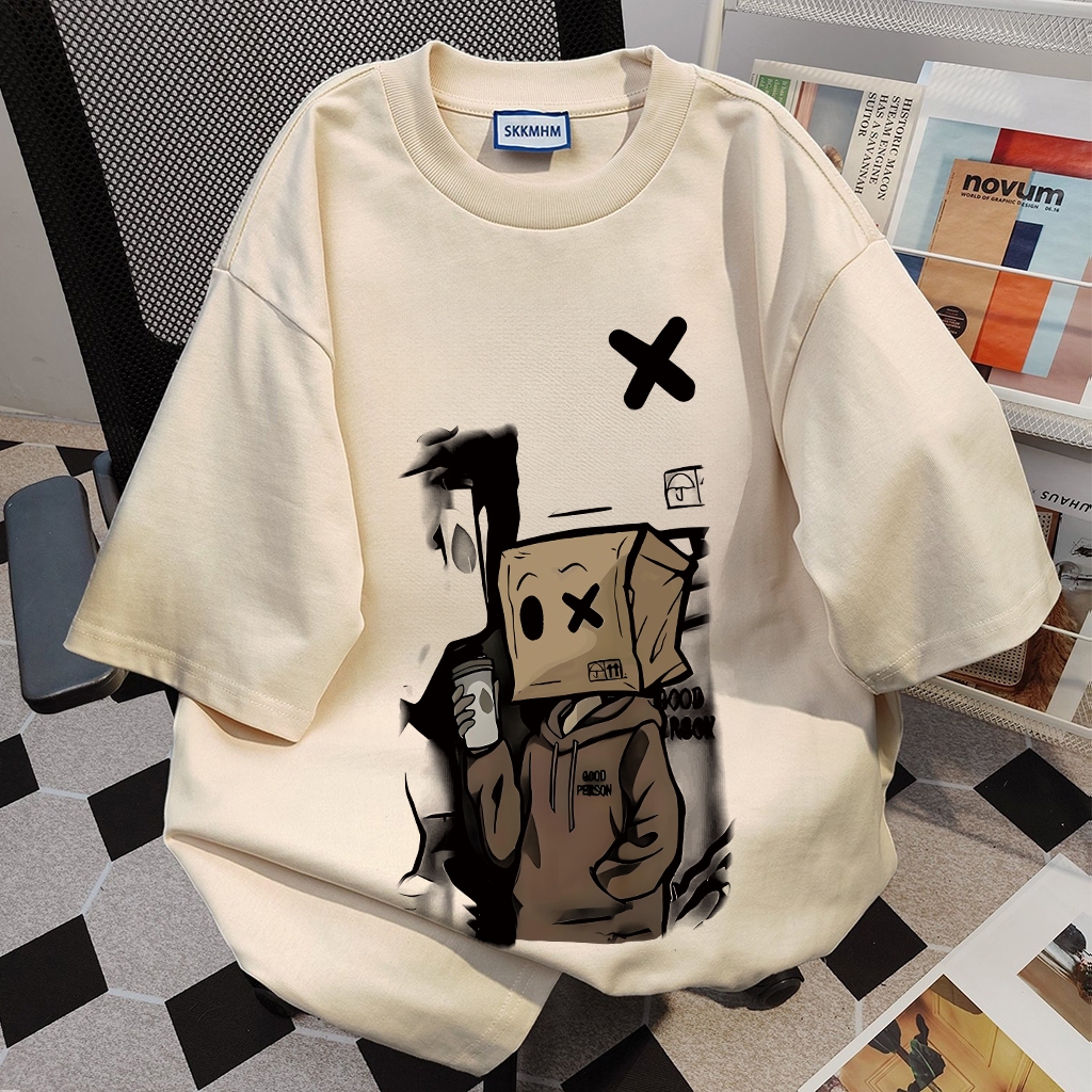 Marlacoeur Pola pria kardus gaya jalanan kartun | Kaos Cowok Distro Original 100 PERSEN | Baju Oversize Pria | Kaos Pria Premium Tebal | Kaos Lengan Pendek Pria | Kaos Oversize Pria Kaos Brown
