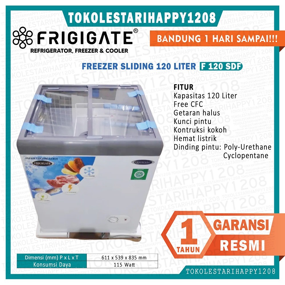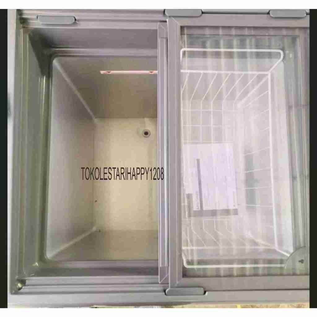 (FREE ONGKIR JAWA BARAT JABOTABEK) CHEST FREEZER BOX KACA FRIGIGATE LEMARI ES KRIM F-120 SDF-LV 110 WATT 100 LITER