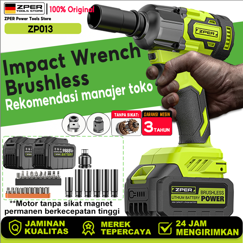 [ 100% ORIGINAL ] Impact Wrench Brushless Cordless Bor Impact Baterai Listrik Electric Rechargeable Torsi Besar