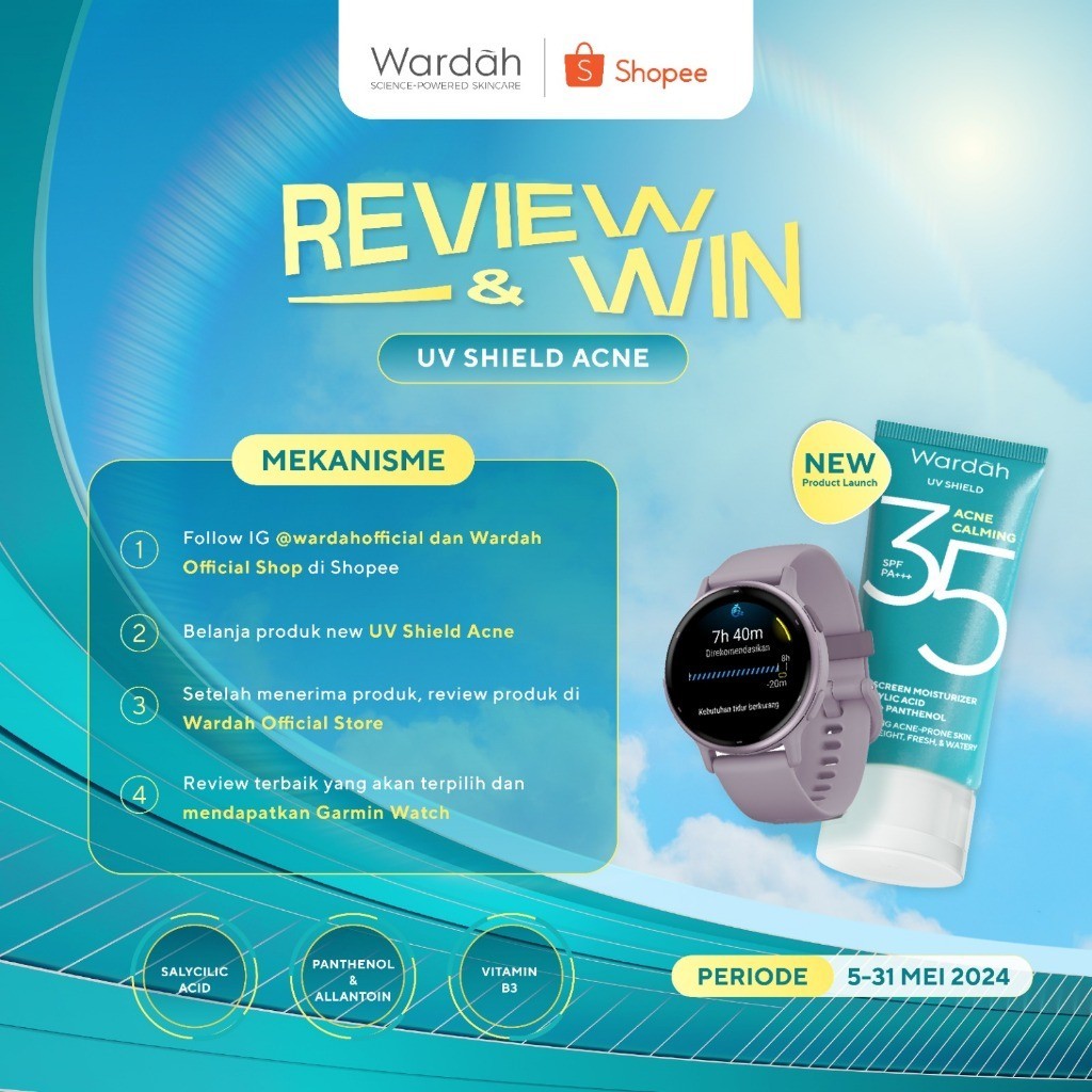 Wardah UV Shield Acne Calming Sunscreen Moisturizer SPF 35 PA+++ untuk komedo, jerawat