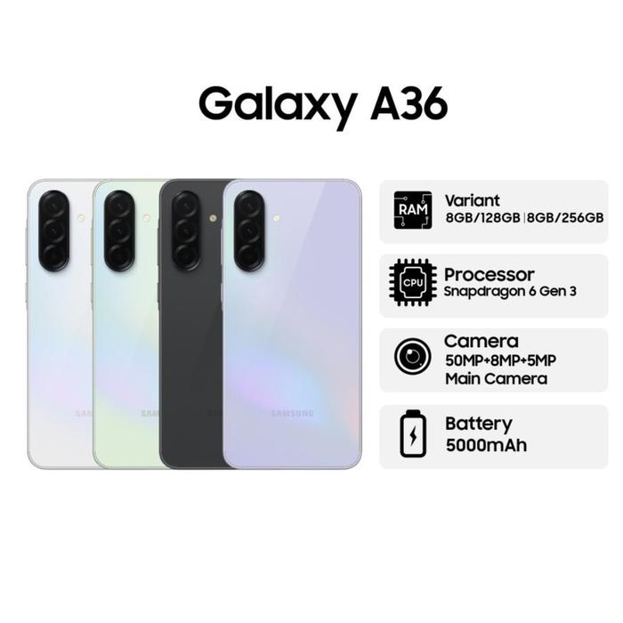 SAMSUNG GALAXY A36 5G 12/256GB 8/256GB NFC - SAMSUNG A36 GARANSI RESMI SEIN - 8/256 LAVENDER, NON BUNDLE