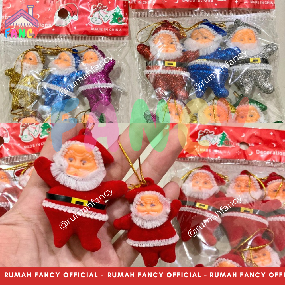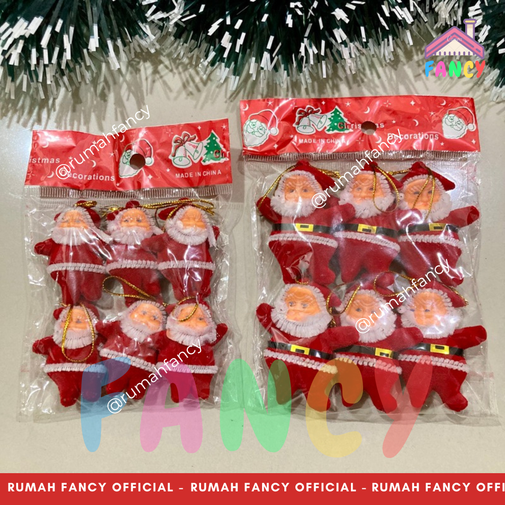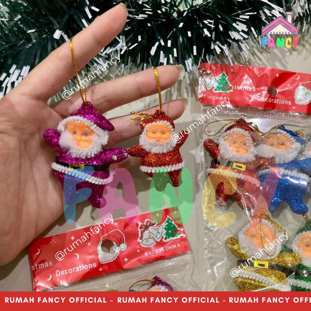 [1 PAK ISI 6 PCS] Gantungan Hiasan Santa Claus Natal Christmas PREMIUM Gliiter/ Maroon Ornamen Natal