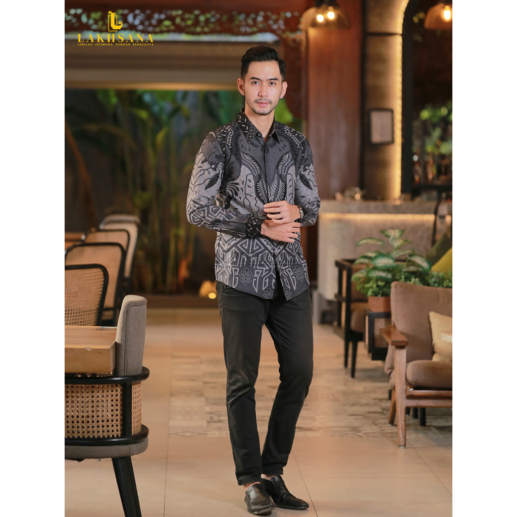 Lakhsana Batik Nirwasita - Kemeja Batik Premium Slimfit Lengan Panjang Bahan Katun Primissima Lapisan Furing Ero Halus L