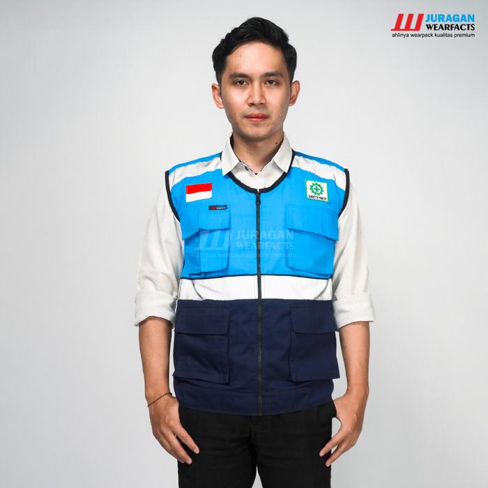 [] Rompi Safety Seragam Proyek Jaring Pria Wanita K3 Warna Biru Toska Kombinasi Biru Navy - S