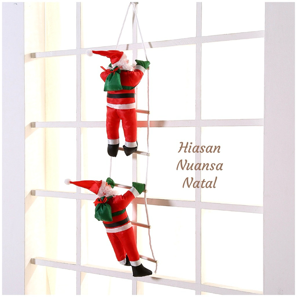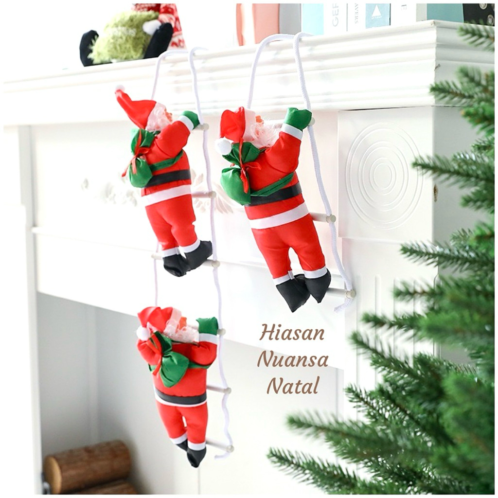 Hiasan Nuansa Natal Unik SANTA PANJAT TANGGA Hiasan Natal Dekorasi Natal Ornamen Natal Aksesoris Natal