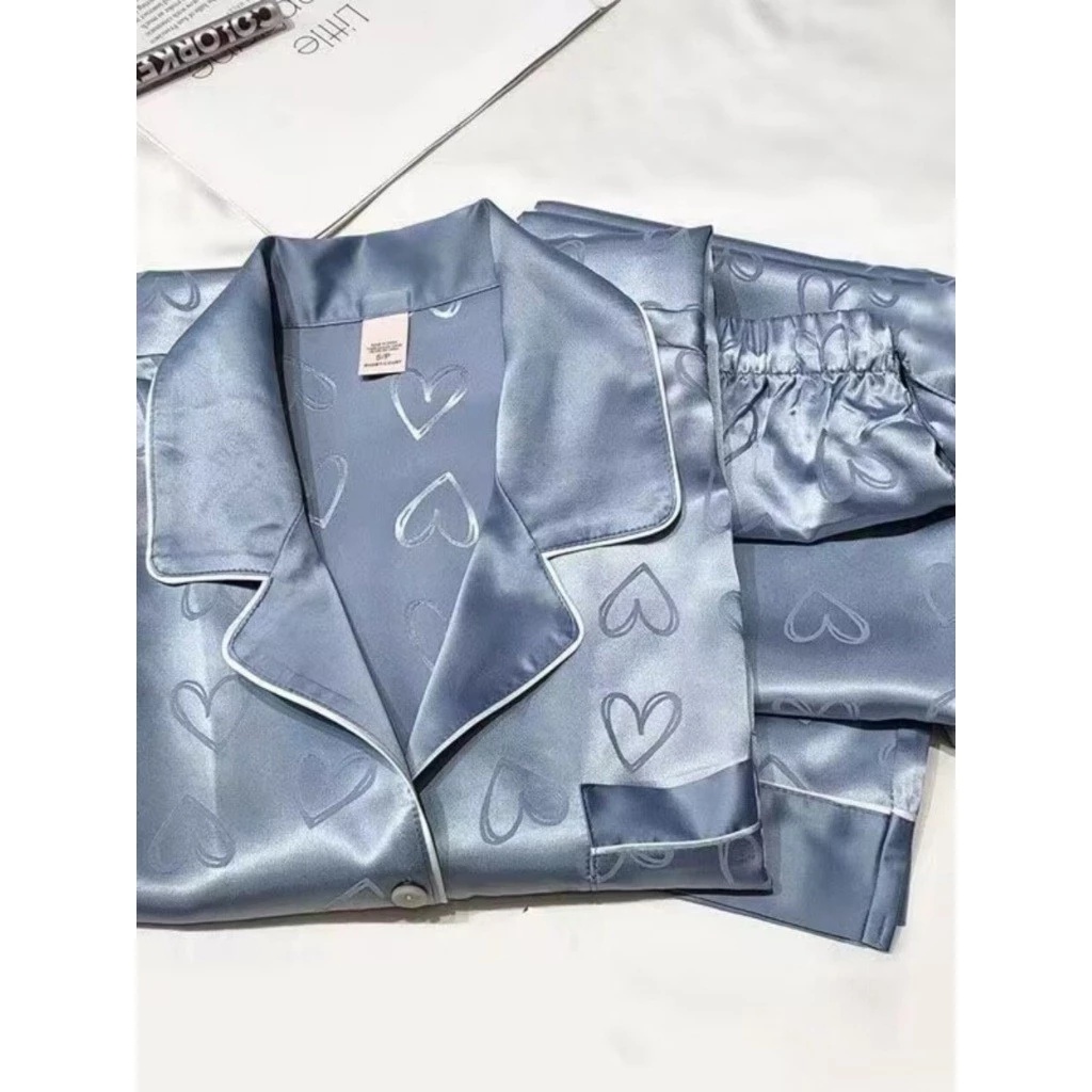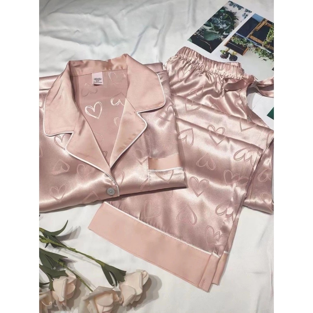 Setelan Piyama Wanita 2 Potong - Atasan dan Celana Panjang Bahan Satin, Nyaman untuk Dipakai Sehari-hari
