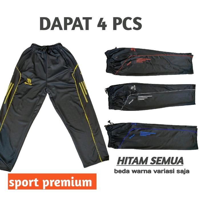 Paket 4 Pcs Celana Training Sport Premium Zeper Lotto Tebal Hitam Motif Pakaian - Beli 4 Warna Random, Standart Bb 40-60