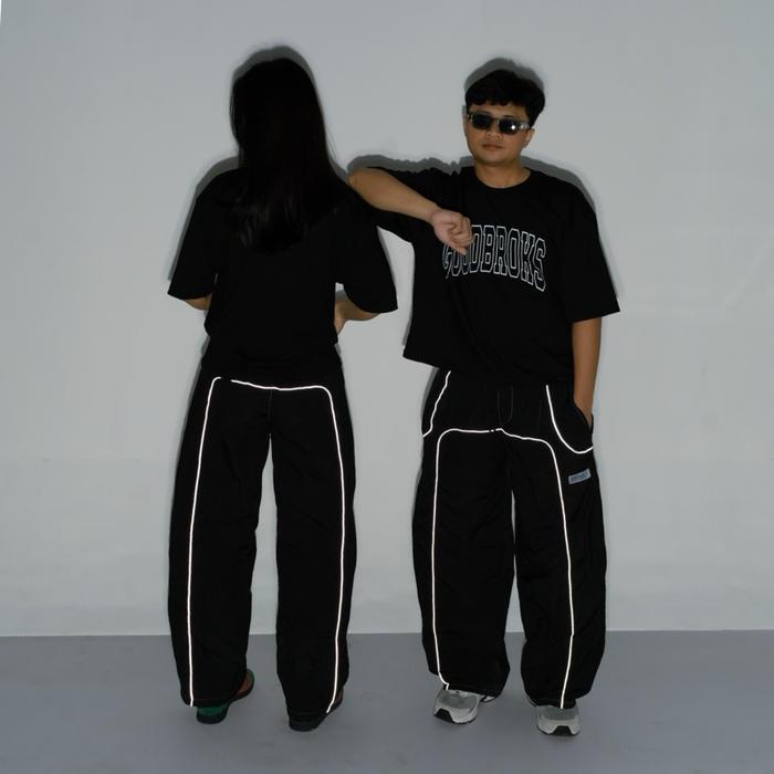 Celana Baggy Pants Striped Line Broks-Taslan Parasut - Reflektif, M