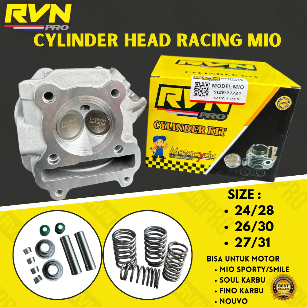 BLOK HEAD RVN CYLINDER HEAD RACING CNC PORTING UKURAN 24/28 27/31 26/30 MM UNTUK MOTOR MIO KARBU FINO KARBU NOUVO