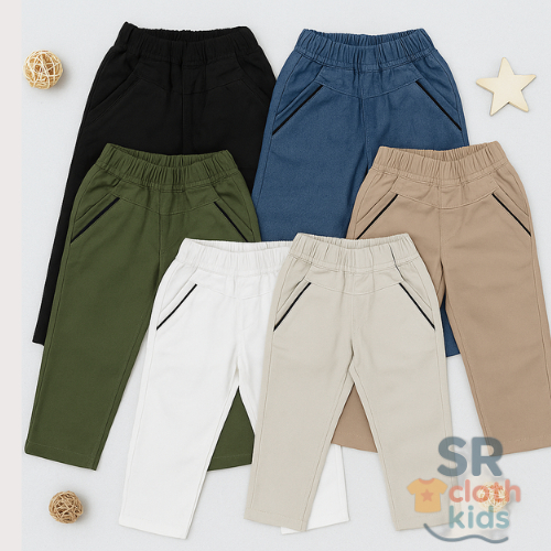 Celana Panjang Anak SR Cloth Kids - Celana Panjang Chino Anak laki laki dan perempuan Warna Hitam Bahan Melar