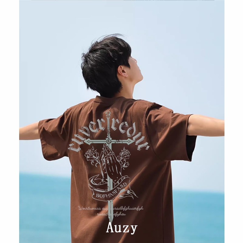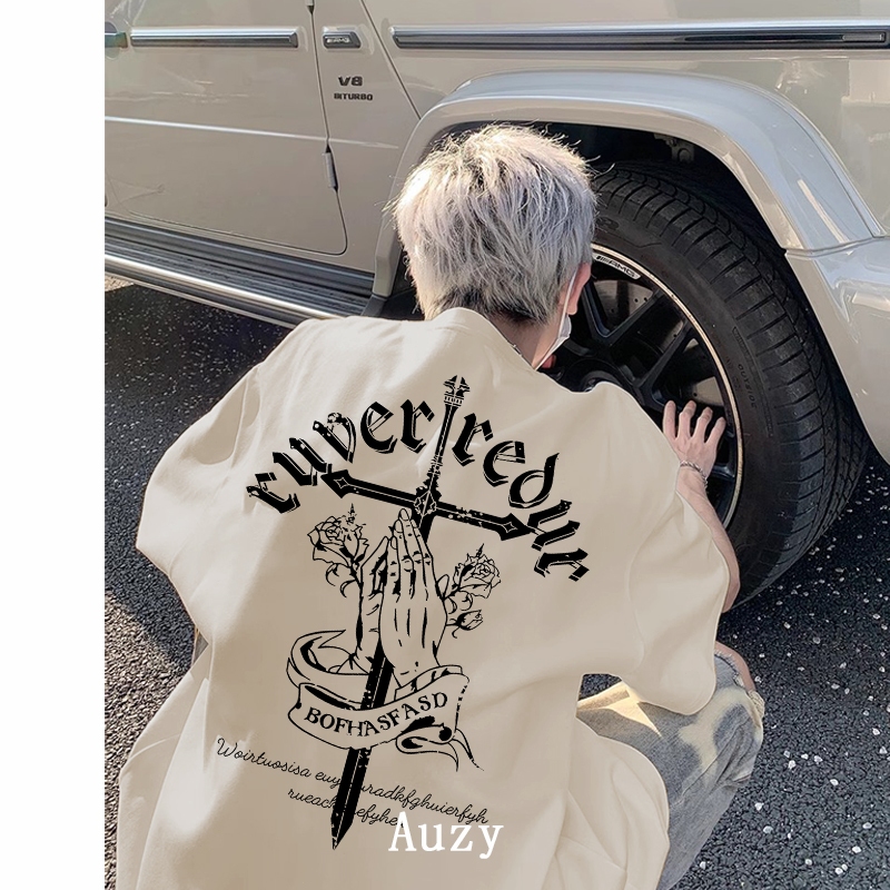 AUZY retro Amerika salib hiphop kaos pria wanita T-shirt baju oversize t shirt distro