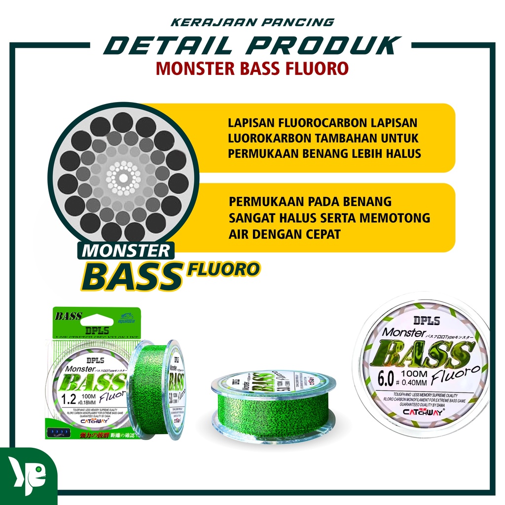 KERAJAAN PANCING - Senar Pancing Bass FLUOROCARBON 100M Warna Hijau Tua Nilon Senar Set Peralatan Pancing Bahan Nilon Tahan Lama Talli Pancing Senar Nilon Pancing Anti Keriting Super Kuat
