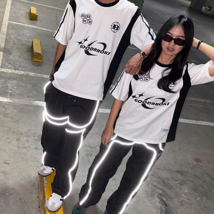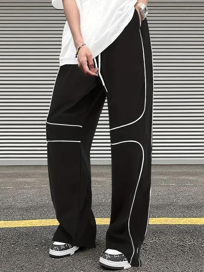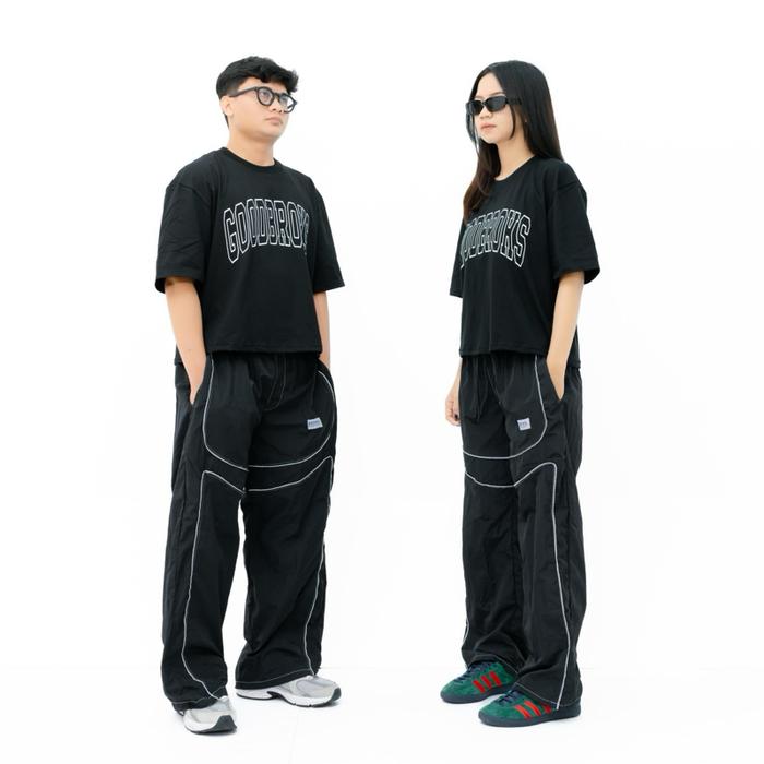 Goodbroks - Baggy Pants Striped Wide Leg Parasut - Reflektif, M