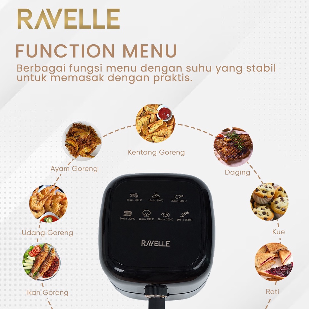 RAVELLE Air Fryer 3 Liter - Penggorengan Tanpa Minyak Low Watt Terjangkau