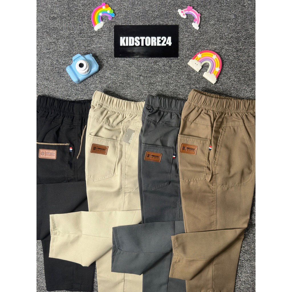 PAKET MURAH 3 Celana Chinos Panjang Anak Laki-Laki Pinggang Karet Usia 2-15 Tahun Bahan Katun Fashion
