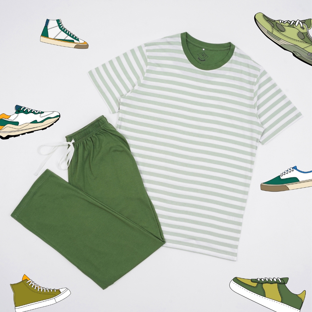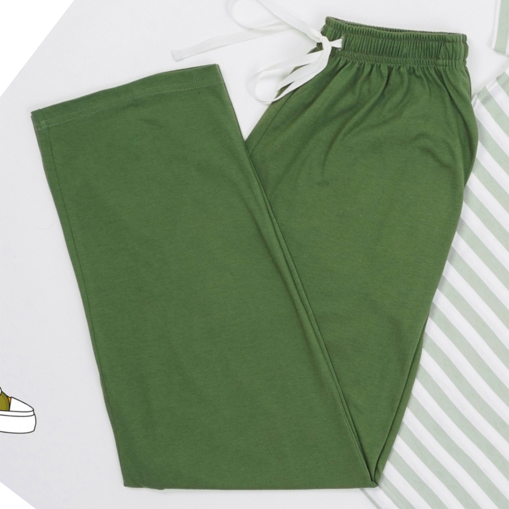 Bobobear Setelan Baju Tidur Piyama Celana Panjang Tangan Pendek Laki Dewasa Premium Green Stripes