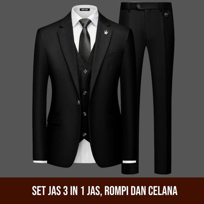 Setelan Jas Pria 2In1 Jas Formal Pria Blazer Pria Jas Nikah Jas Blezer Pria Jas Pria Slimfit Celana Semi Wisuda Hitam -