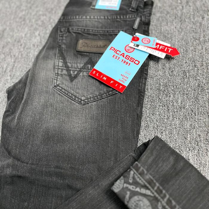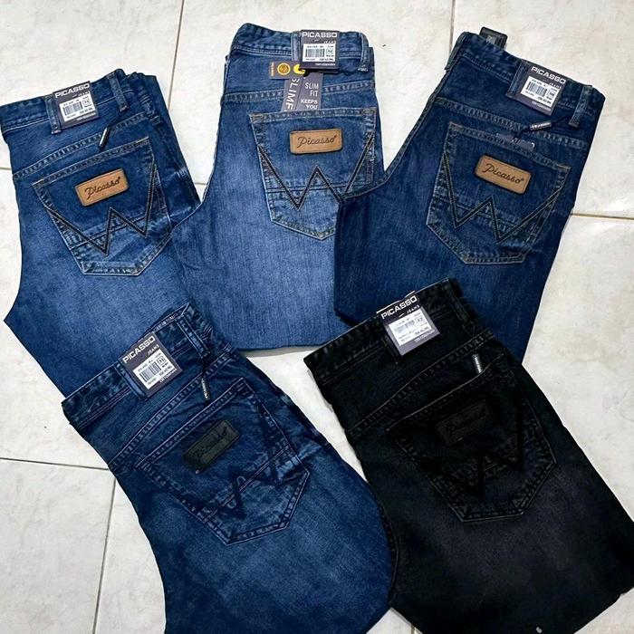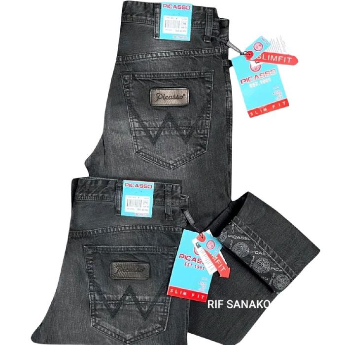 Picasso Denim W Series (Kulit Di Belakang) /Tidak Karet /Tidak Pensil Celana Jeans Reguler Slim Fit Panjang Denim Pria N