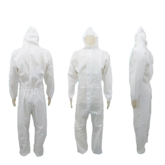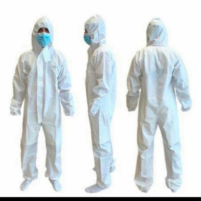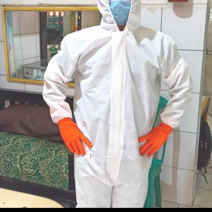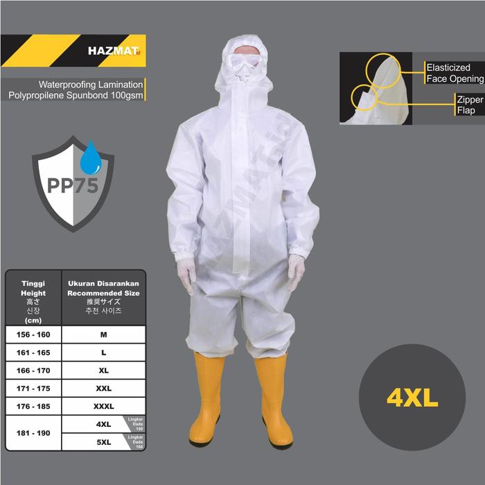 BAJU APD PUTIH PANJANG SAFETY WEARPACK PRIA BAHAN SPUNBOUND 75GRAM RESLITING TENGAH MEREK YKK ELASTIS 4 TITIK KUALITAS TERBAIK