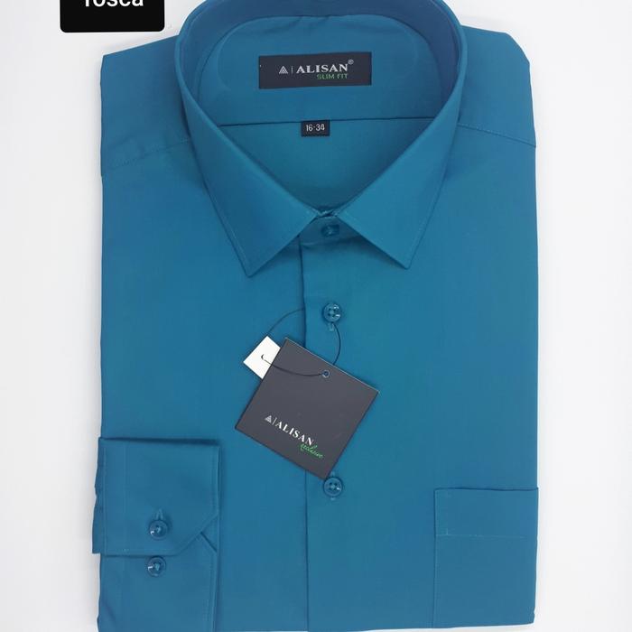 Alisan Slim Fit Kemeja Pria Polos Slim Fit Lengan Panjang// Aneka Warna// Hitam - Coklat C1, No 16 = Xl