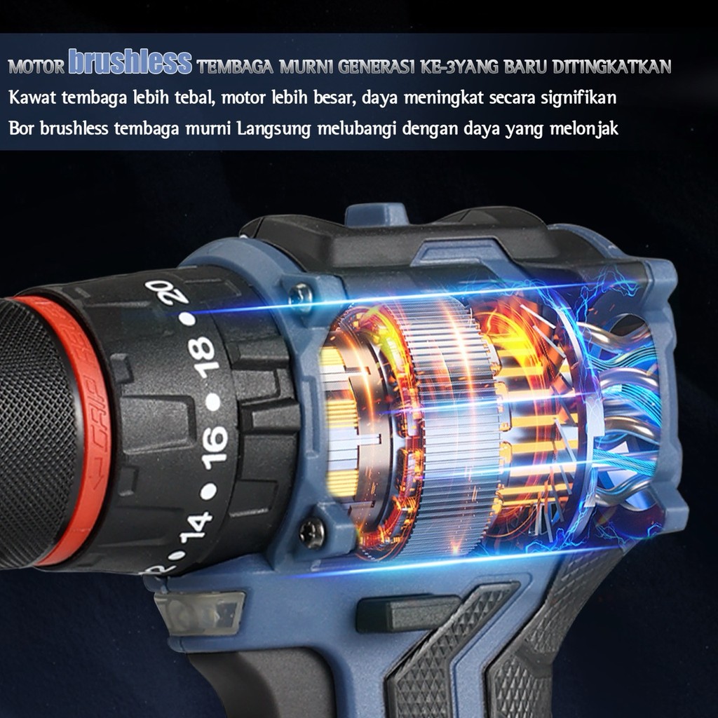 LIMSK LI-1010 Mesin Bor Baterai Brushless 80N.M 13mm Cordless Impact Drill Dapat Mengebor Beton Besi Kayu