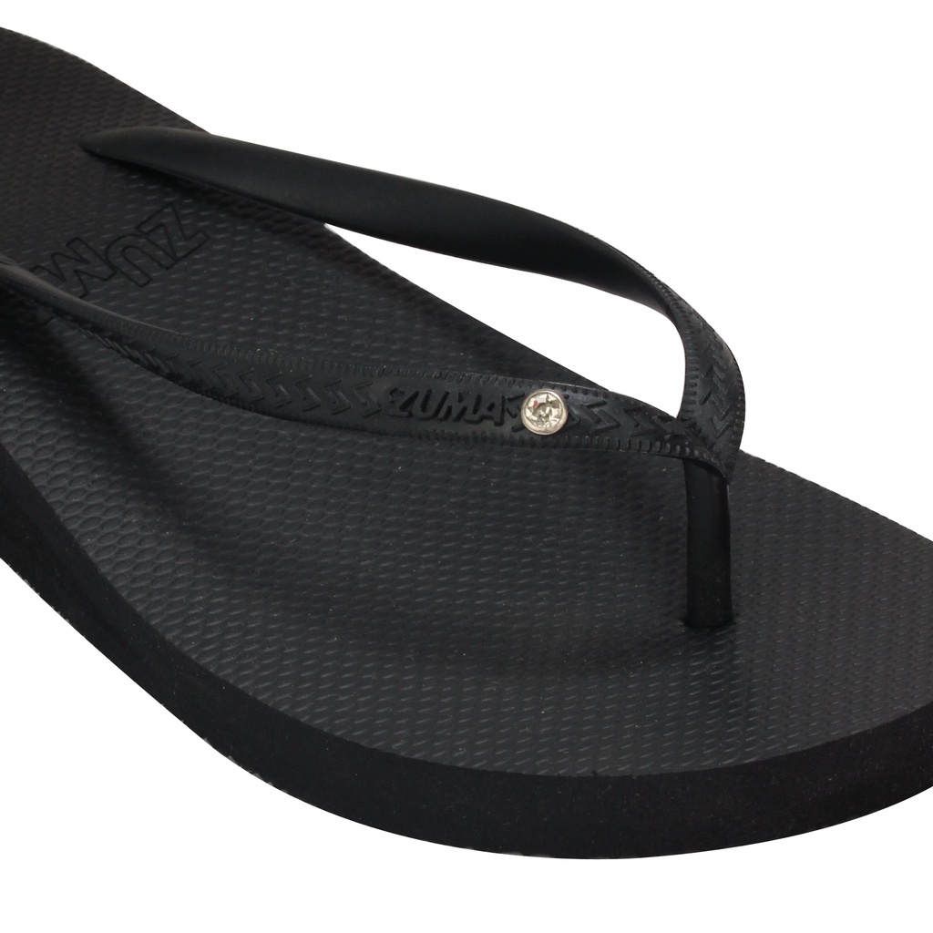 Zuma Women Tiffany 2 Black, Sandal Jepit Wanita Wedges Karet Polos, Hitam