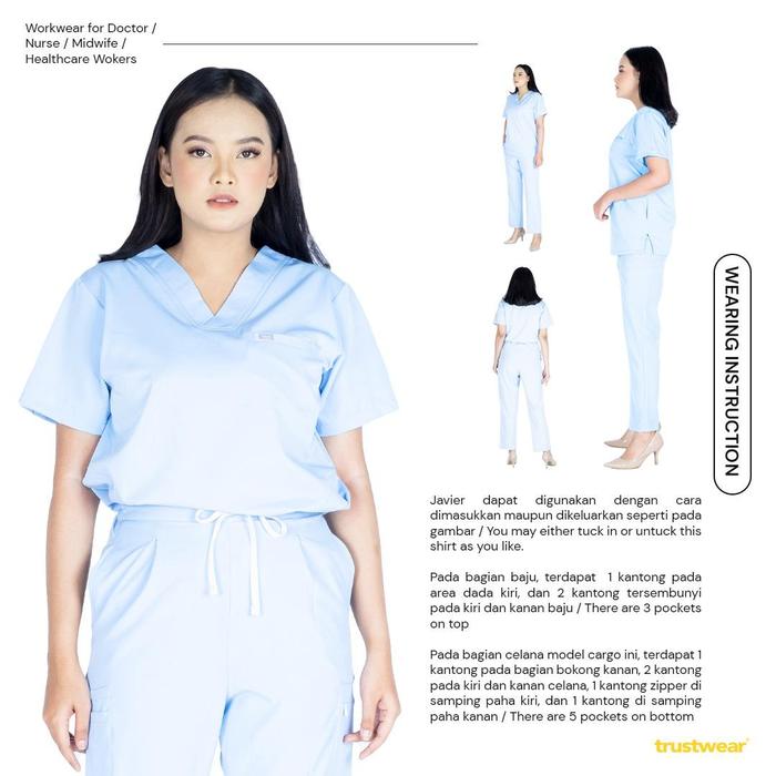 TRUSTWEAR - JAVIER DOCTOR'S SCRUB / SET BAJU CELANA JAGA OKA OK PERAWAT / DOKTER LENGAN PENDEK IV - FRENCH BLUE, XS