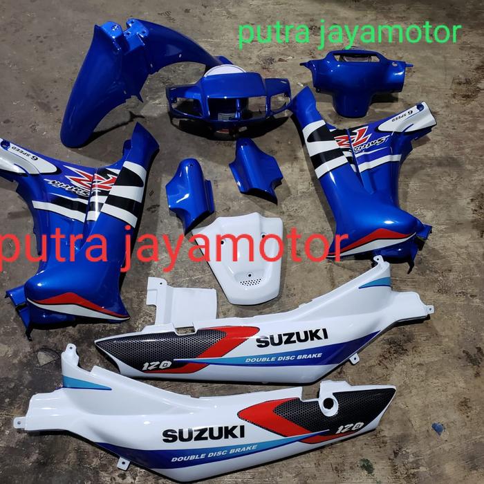 COVER BODY BODI SATRIA R 2TAK SATRIA LUMBA WARNA BIRU PUTIH SET STIKER