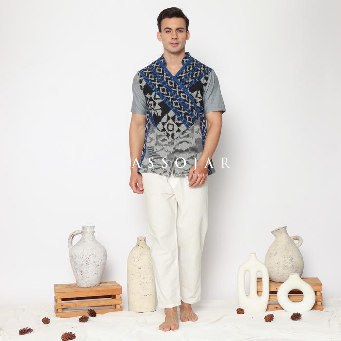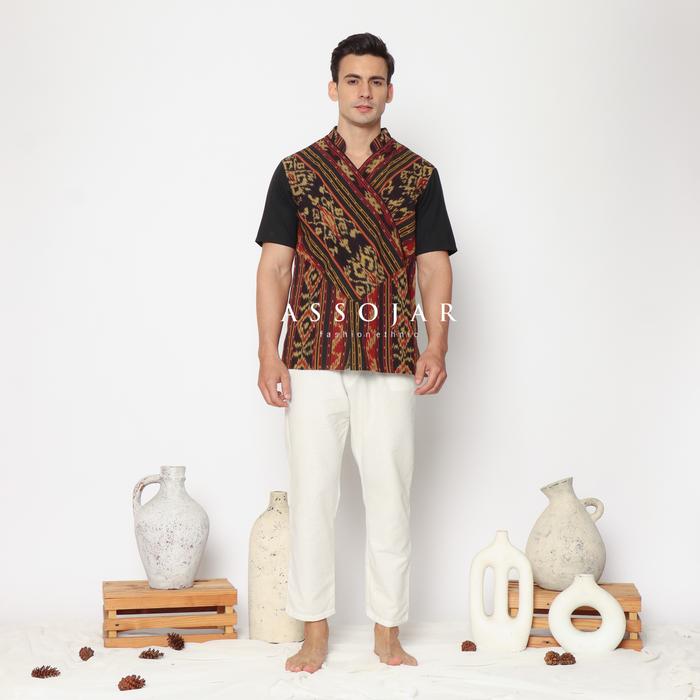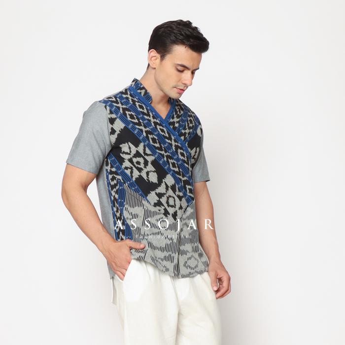 Vneck Shirt Tenun Kemeja Pria Tenun Ethnic Abu Baju - Kuning Hitam, M