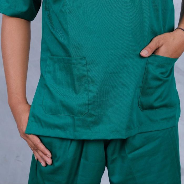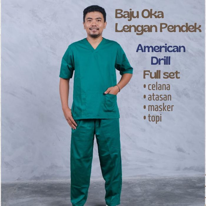 BAJU OK OKA LENGAN PENDEK AMERICAN DRILL FULL SET ATASAN CELANA PANJANG - HIJAU BOTOL, S
